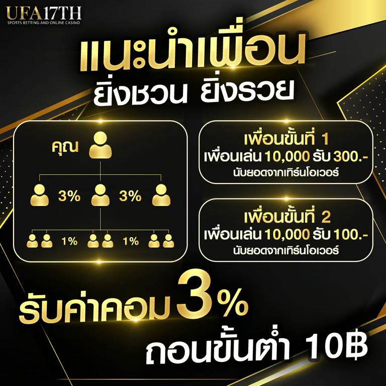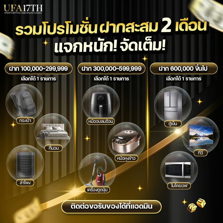 สำหรับใครที่กำลังมองหาเว็บพนันที่มอบความคุ้มค่าและใส่ใจสมาชิก UFA17TH คือคำตอบที่ใช่สำหรับคุณ ด้วยโปรโมชั่นมากมายที่เราคัดสรรมาเพื่อมอบประสบการณ์การเดิมพันที่ดีที่สุดให้กับสมาชิกทุกคน เข้าร่วมกับเราวันนี้ และสัมผัสประสบการณ์การเดิมพันที่แตกต่างได้ที่ UFA17TH